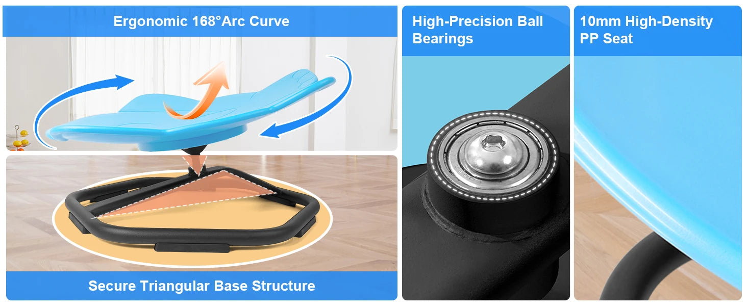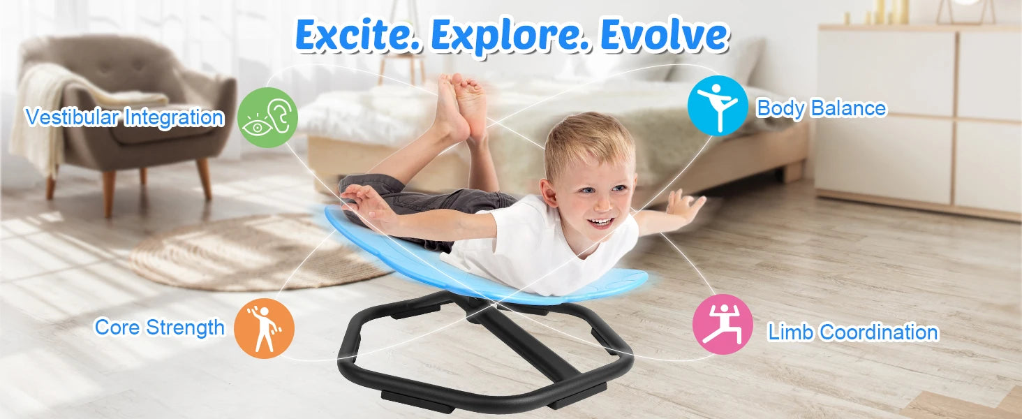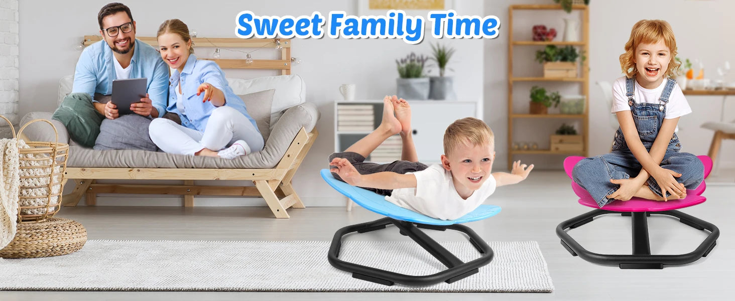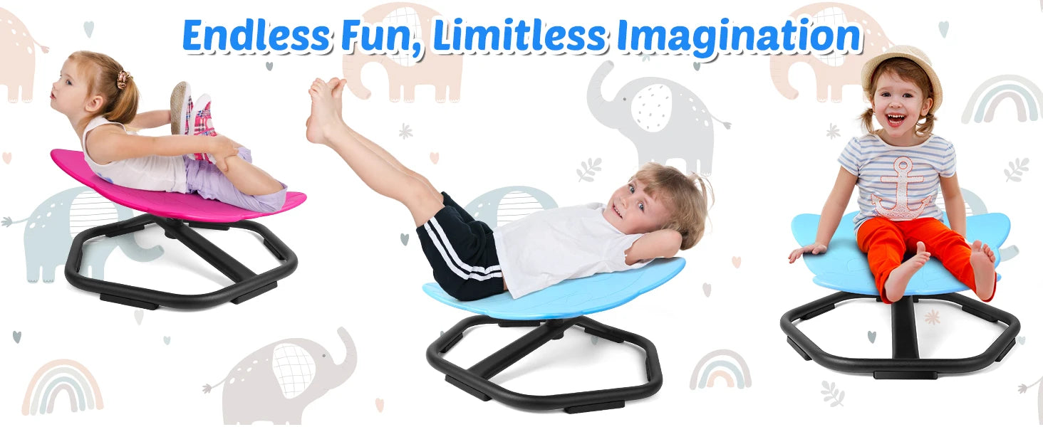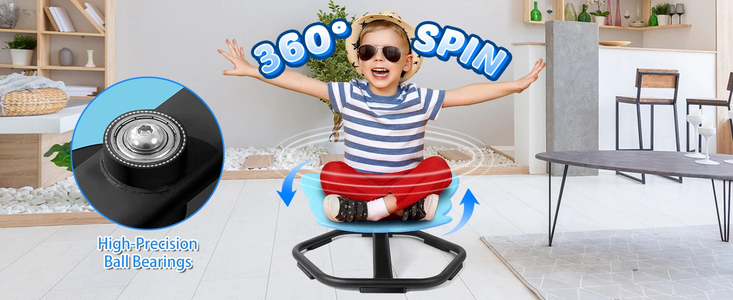 【360°Ultra-Smooth Rotation】Upgraded with high-precision ball bearing and torque structure that conforms to inertial dynamics, this spinning seat allowing kids to fully control the rotation easier and smoother. Let your child sets the pace–spinning slowly relaxes; spinning quickly develops balance.