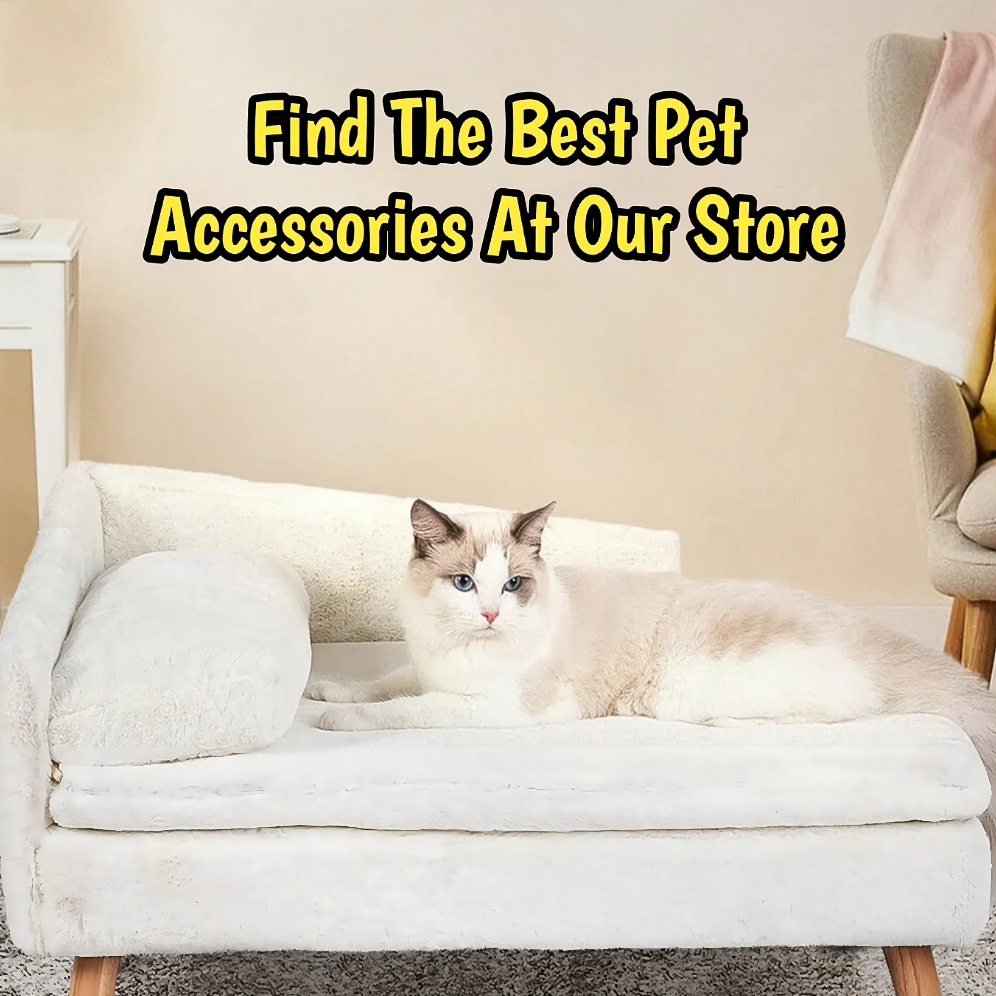 Elevated Pet Bed Solid Wood Leg Dog Cat Sofa for Indoor L Shape Plush Couch Lounge with Soft Cushion